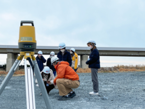 オリエンテーション、土木現場見学(測量デモ・操作体験)、質疑・まとめ